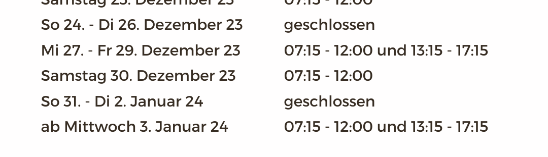 Unseren 24h-Pikettdienst erreichen Sie bei Notfällen natürlich auch während den Feiertagen. Wir sind für Sie da, bei Bedarf 365d / 24h.